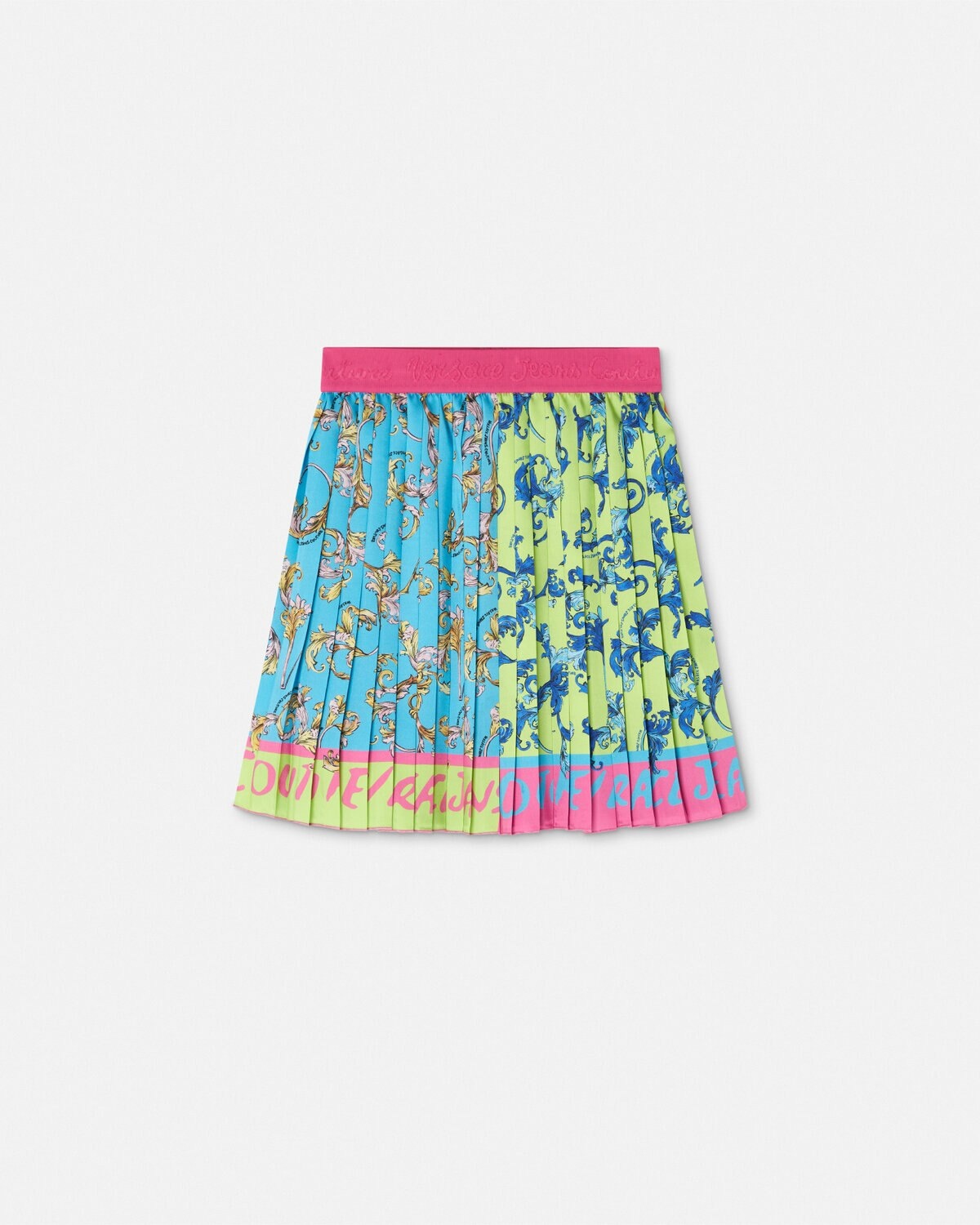 DETAILS This twill pleated mini skirt features an Outline Barocco print with colorful and joyous painterly acanthus leaves The design is complete with a jacquard cursive logo on the elastic waistband - Outline Barocco print - Signature Institutional Logo motif - Elastic waistband - Pleated - Outer composition: 100% Polyester Item: E78HAE8P0-ENS637_EMC3