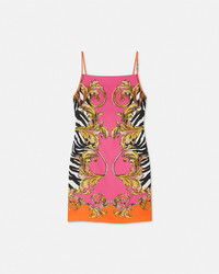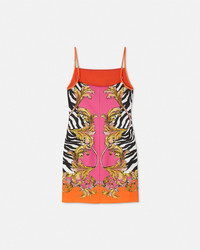 DETAILS A crpe mini dress featuring the Outline Barocco print with the Institutional Logo hardware on the shoulder strap - Outline Barocco print - Institutional Logo hardware - Sleeveless - Adjustable shoulder straps - Concealed side zip closure - Outer composition: 100% Polyester - Lining: 100% Polyester Item: E78HAO9P7-ENS651_E494