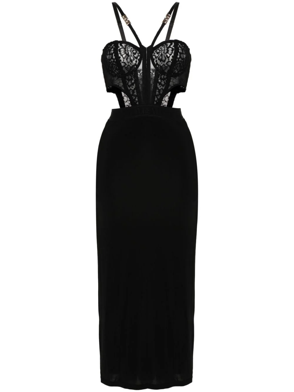 panelled-design dress Highlights - Black - Stretch-design - Panelled design - Lace design - Corset style - Semi-sheer construction - Gold-tone logo plaque - Sweetheart neck - Adjustable shoulder straps - Elasticated logo waistband - Partial lining - Rear zip fastening Made in Italy Composition Outer: Polyester 100%, Viscose 92%, Spandex/Elastane 8% Lining: Polyamide 100% SIZE & FIT Model measurements Height 5 ft 10 in(1.77 m) Bust/Chest 33.07 in(84 cm) Hips 37 in(94 cm) Waist 24.8 in(63 cm) FittingInformation Designed for a close fit throughout The moulded cups offer shape and support Made from a midweight fabric This piece fits true to size – those with a fuller chest may wish to take one size up