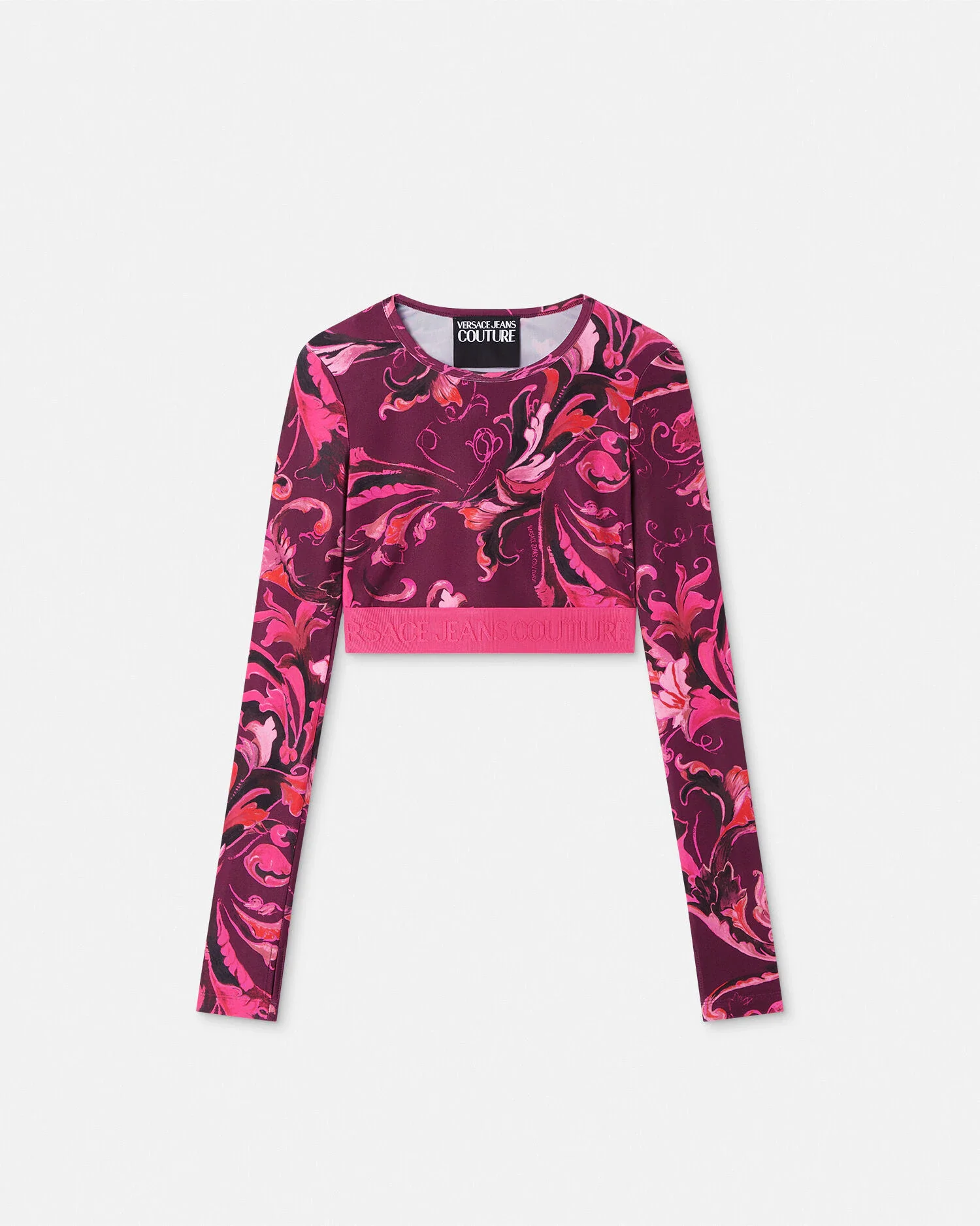 This satin lycra cropped top features an all-over Porcelain Barocco print and an elastic waistband with a debossed Institutional Logo motif. - Porcelain Barocco print - Institutional Logo debossing - Long sleeves - Crewneck - Elastic waistband - Outer composition: 80% Polyester, 20% Elastane Item: E79HAH218-EJS501_E317