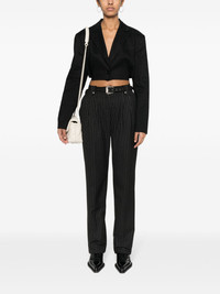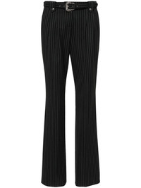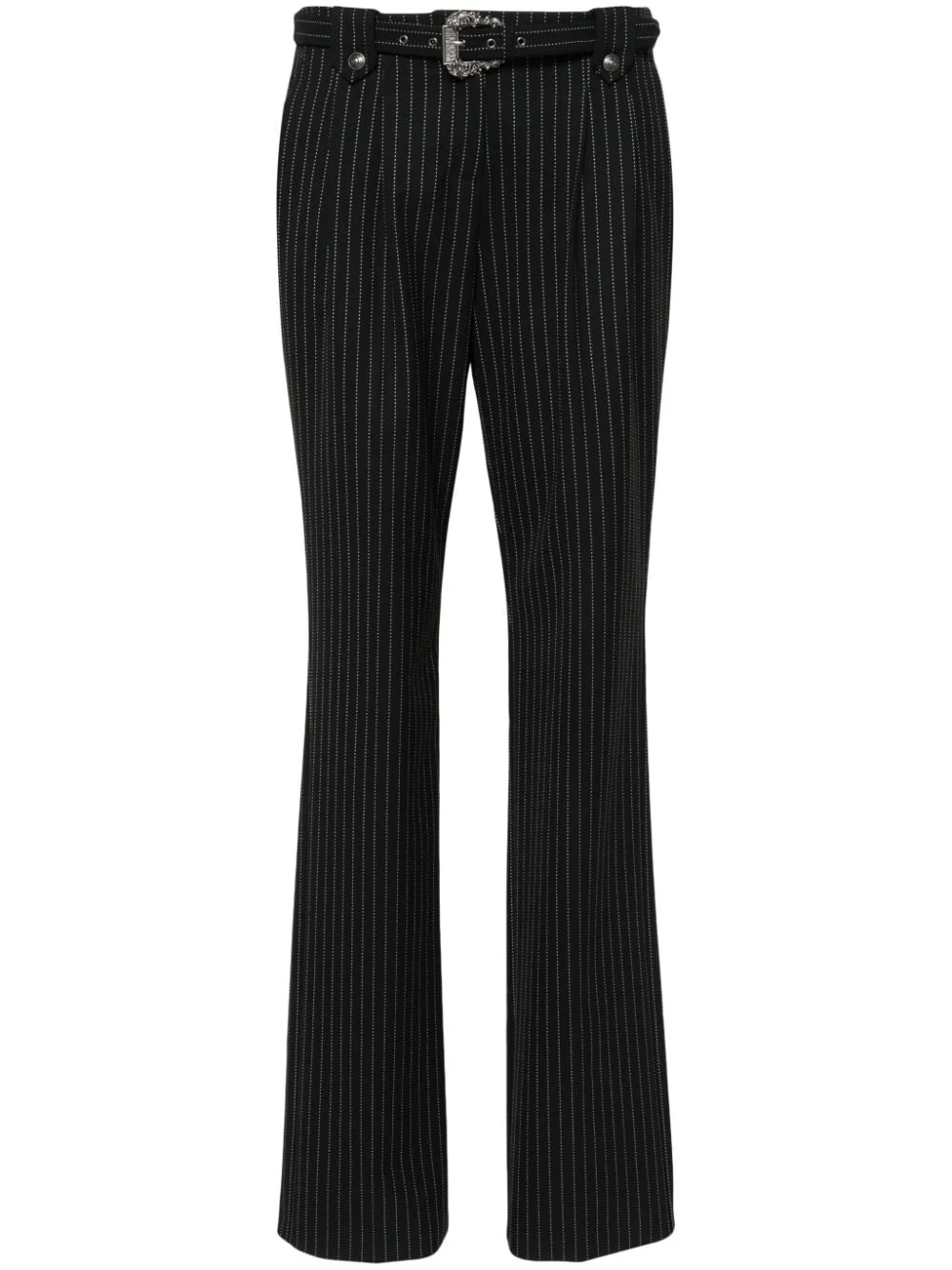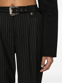 pinstriped logo-engraved straight trousers Highlights - Black/white - Pinstripe pattern - Belt loops at the waist - Detachable waist belt - Logo-engraved buckle - Pleat detailing - Two side slash pockets - Internal logo tag - Straight leg - Front button and zip fastening Made in Italy Composition Outer: Polyester 67%, Viscose 29%, Elastane 4% Lining: Polyester 100% SIZE & FIT Model measurements Height 5 ft 9 in(1.76 m) Bust/Chest 31.1 in(79 cm) Hips 36.61 in(93 cm) Waist 24.8 in(63 cm) FittingInformation Designed for a tapered fit, these trousers allow for a close fit at the waist and a loose unrestricted fit over the leg with a closer fit towards the ankle The belt offers adjustability for fitted preferences Made from a midweight non-stretch fabric This piece fits true to size – take your usual size Washing instructions Machine Wash