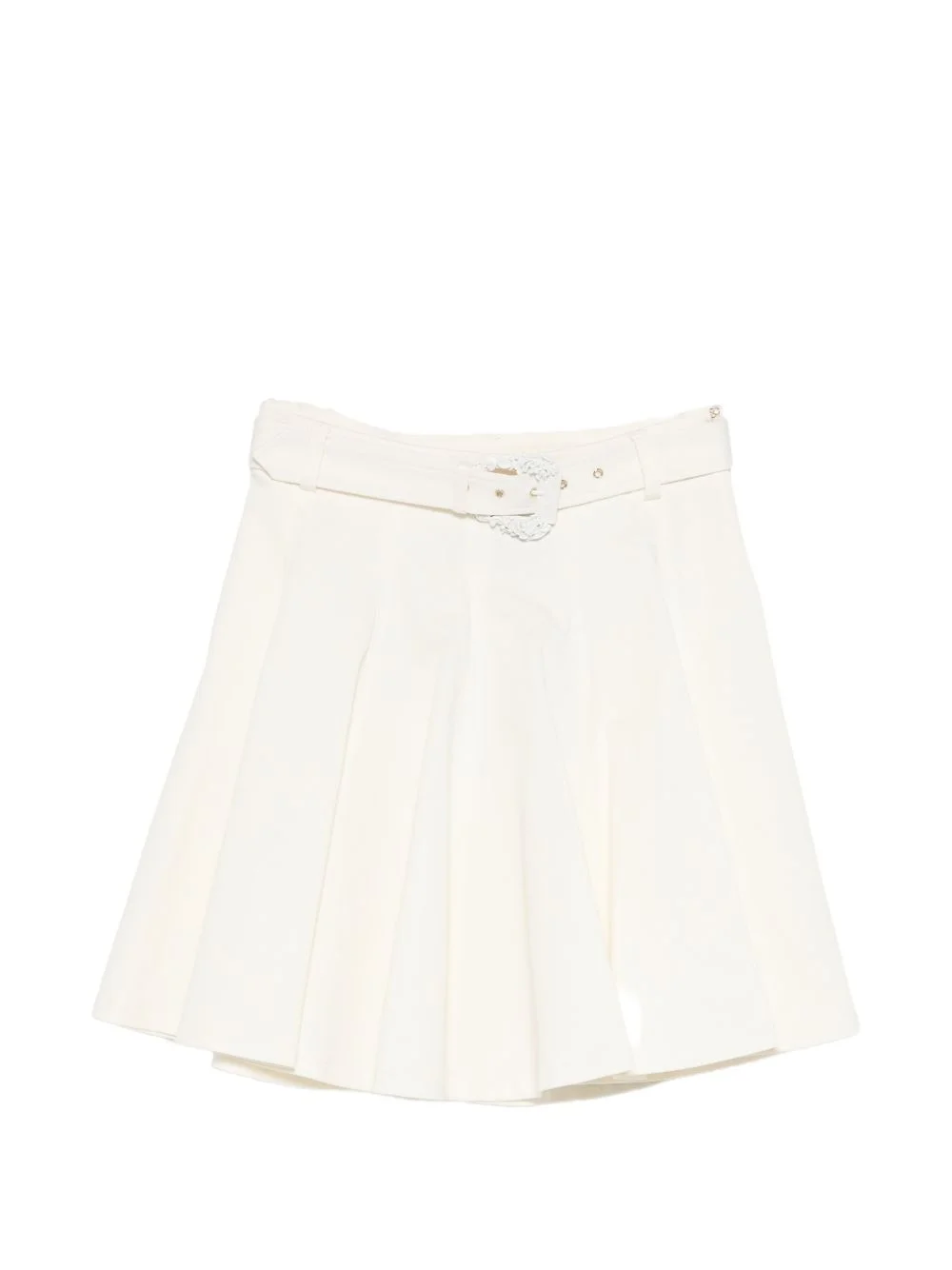 pleated belt skirt Highlights - Cream - Pleated design - Embellished buckle belt Made in Italy Composition Cotton 98%, Elastane 2% Washing instructions Machine Wash
