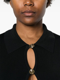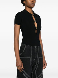 polo-collar knitted bodysuit Highlights - Black - Ribbed knit - Polo collar - Front cut-out detailing - Decorative button detailing - Logo-embossed gold-tone buttons - Short sleeves - Ribbed cuffs - Front single button-fastening to the neck - Just a reminder that this piece must be tried on over your own garments. Imported Composition Viscose 76%, Polyamide 24% SIZE & FIT Model measurements Height 5 ft 11 in(1.8 m) Bust/Chest 31.49 in(80 cm) Hips 36.61 in(93 cm) Waist 24.4 in(62 cm) FittingInformation Designed for a close fit throughout Made with a midweight knit, this piece offers some stretch This piece fits true to size – take your usual size Washing instructions Machine Wash