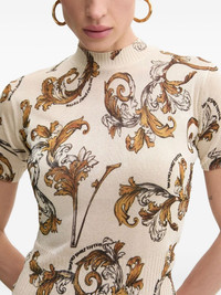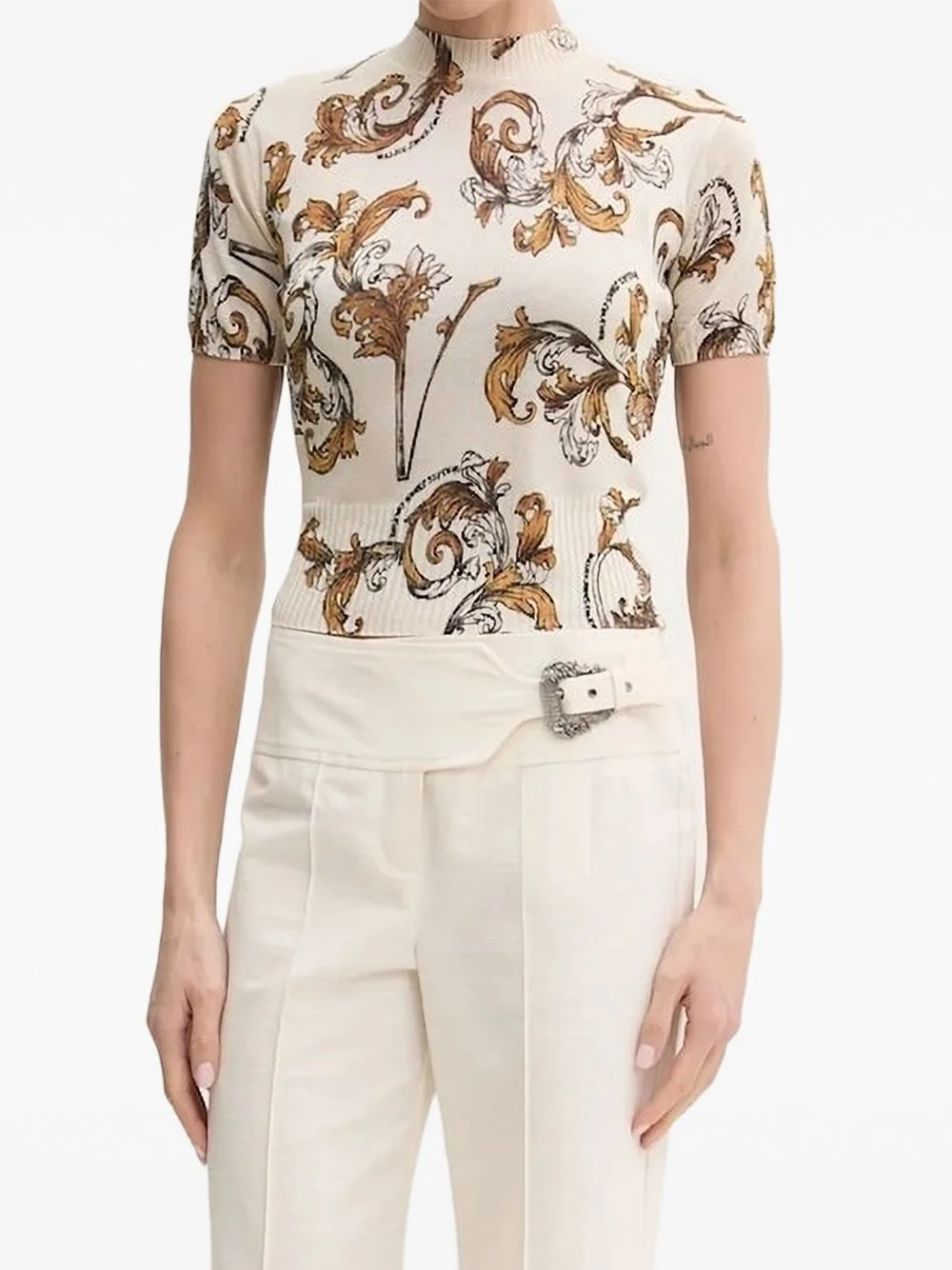 print knit t-shirt Highlights - Beige - Short sleeves - Ribbed hem - Logo label Imported Composition Viscose 90%, Polyester 10% Washing instructions Read Manufacturer Guidelines