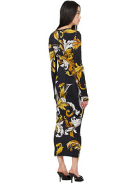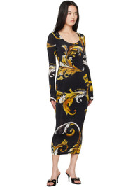 Black & Yellow Outline Barocco Midi Dress