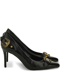 Scarlett buckle-detail pointed-toe pumps Highlights - Black - Leather - Pointed toe - Gold-tone buckle embellishment - Stiletto heel - Buckle strap Imported Composition Sole: Polyurethane 100% Outer: Polyurethane 100% Lining: Fabric 100%