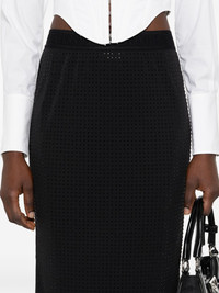 crystal-embellished midi skirt Highlights - Black - Jersey texture - Crystal embellishment - High waist - Below-knee length - Unlined - Straight hem - Elasticated logo waistband Made in Italy Composition Polyester 100% SIZE & FIT Model measurements Height 5 ft 11 in(1.8 m) Bust/Chest 32.67 in(83 cm) Hips 36.22 in(92 cm) Waist 24.4 in(62 cm) FittingInformation This midi-length skirt is intended to be worn high on the waist The elasticated waist allows for a comfortable fit Made from a midweight stretch fabric, this piece offers elasticity and flexibility when worn This piece fits true to size – take your usual size Washing instructions Hand Wash