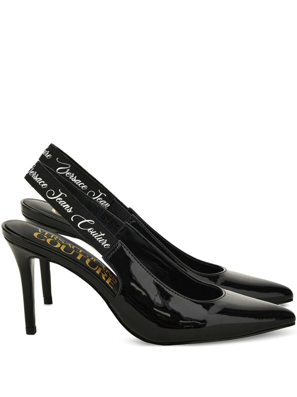 slingback patent leather pumps Highlights - Black - Patent leather - Slingback strap - Stiletto heel - Pointed toe - Branded strap Imported Composition Lining: Fabric 100% Outer: Polyurethane 100% Sole: Polyurethane 100%