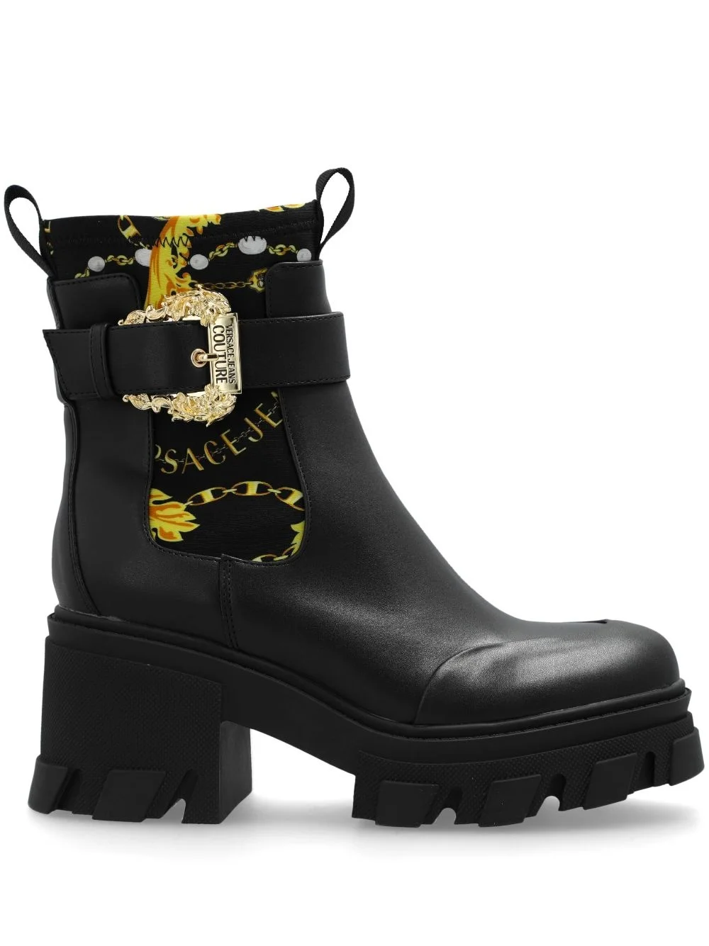 90mm Sophie boots Highlights - Black - Gold-tone hardware - Baroque-pattern print - Engraved logo - Decorative buckle detail - Pull-tab at the heel - Elasticated side panels - Round toe - Slip-on style - 90mm block heel - Platform sole Imported Composition Other fibres 100% SIZE & FIT Measurement HEEL 3.54 in(9 cm) PLATFORM 1.77 in(4.5 cm)