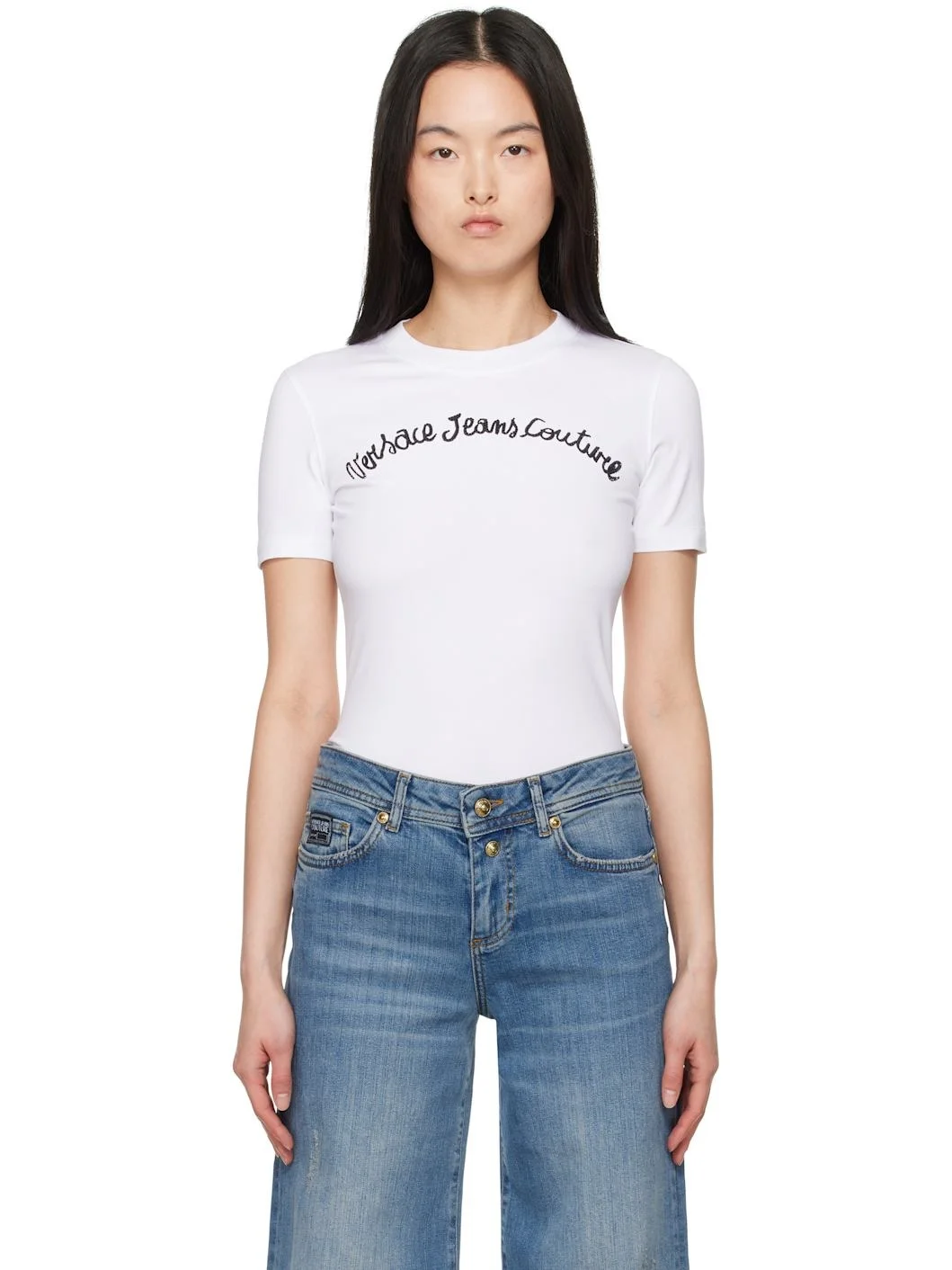 Stretch cotton jersey T-shirt. · Rib-knit crewneck · Printed logo with sequins at front Supplier color: White 92% cotton, 8% elastane. Made in Turkey 251202F110007