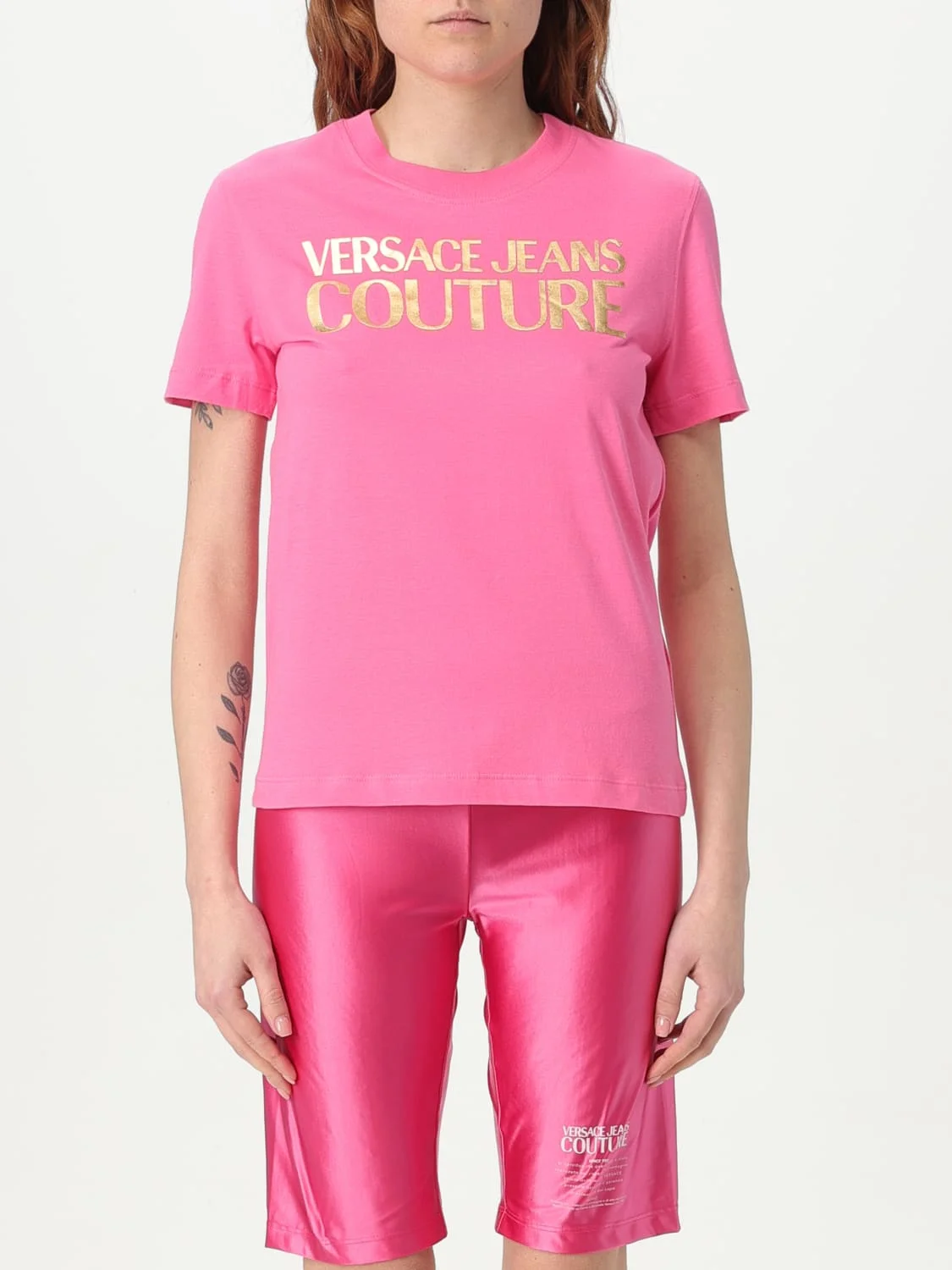 DESCRIPTION - Style: Contemporary - Logo: Print - Model: Crewneck - Neckline: Crewneck - Shoulders: Regular - Sleeves: Short - Bottom: With straight hemline - Materials: Cotton - Pattern: Logo DETAILS AND CARE Composition 100% CO SIZE AND FIT Sizes not available Size and fit Regular fit Designer code: 78HAHE05CJ00E 494 Giglio Code: G77355 Designer: Versace Jeans Couture Collection: Versace Jeans Couture Woman Category: Clothing Versace Jeans Couture