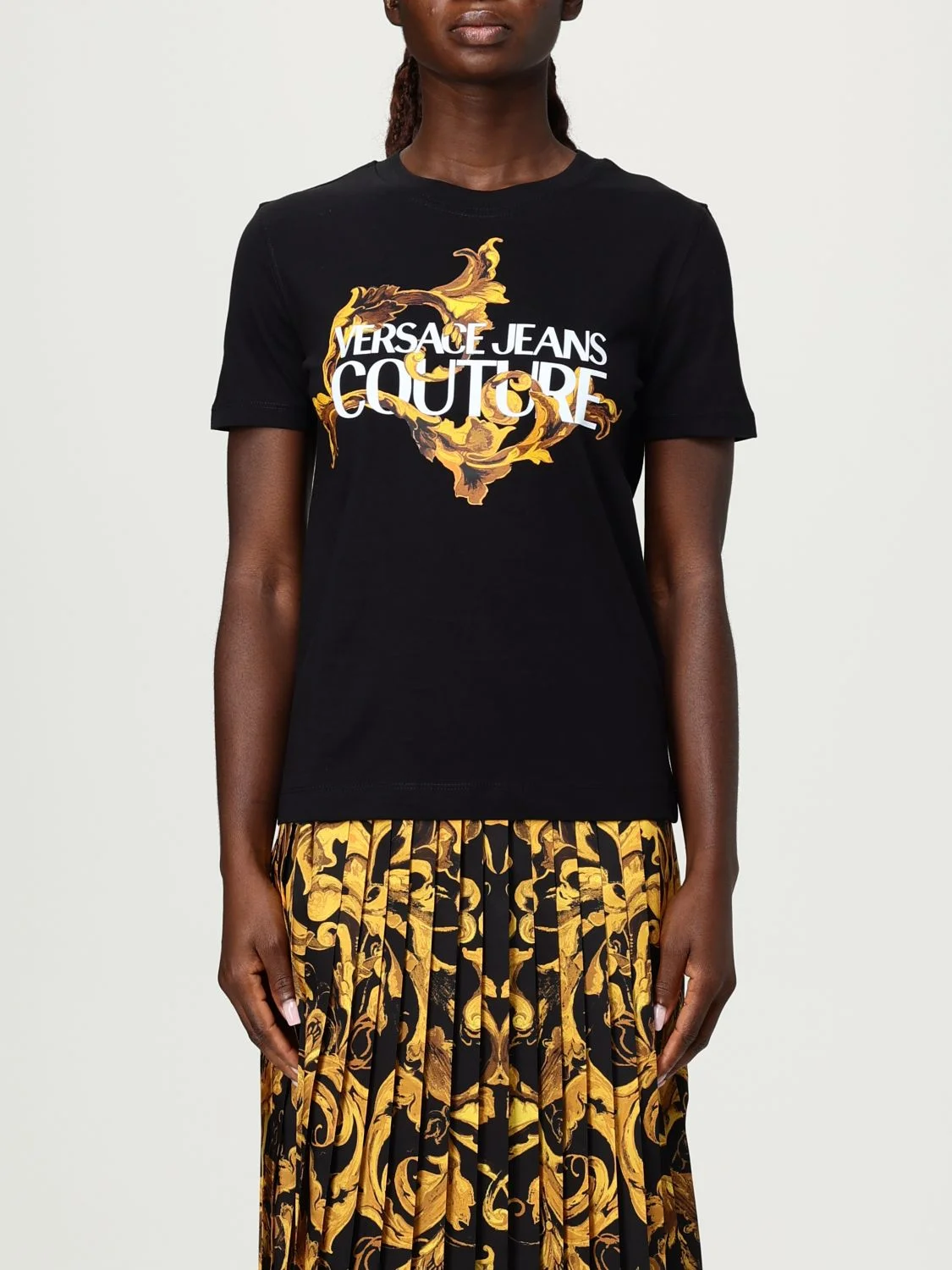 DESCRIPTION - Style: Vintage - Logo: Contrasting - Model: Crewneck - Neckline: Crewneck - Shoulders: Regular - Sleeves: Short - Bottom: With straight hemline - Materials: Cotton - Pattern: Baroque Versace DETAILS AND CARE Composition not available SIZE AND FIT Sizes not available Size and fit Slim fit Designer code: 79HAHE06CJ00E G89 Giglio Code: H36489 Designer: Versace Jeans Couture Collection: Versace Jeans Couture Woman Category: Clothing Versace Jeans Couture