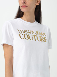 DESCRIPTION - Logo: Laminated - Neckline: Crewneck - Sleeves: Short - Materials: Cotton DETAILS AND CARE Composition 100% CO SIZE AND FIT Sizes not available Designer code: 76HAHT04CJ00T G03 Giglio Code: F14381 Designer: Versace Jeans Couture Collection: Versace Jeans Couture Woman Category: Clothing Versace Jeans Couture