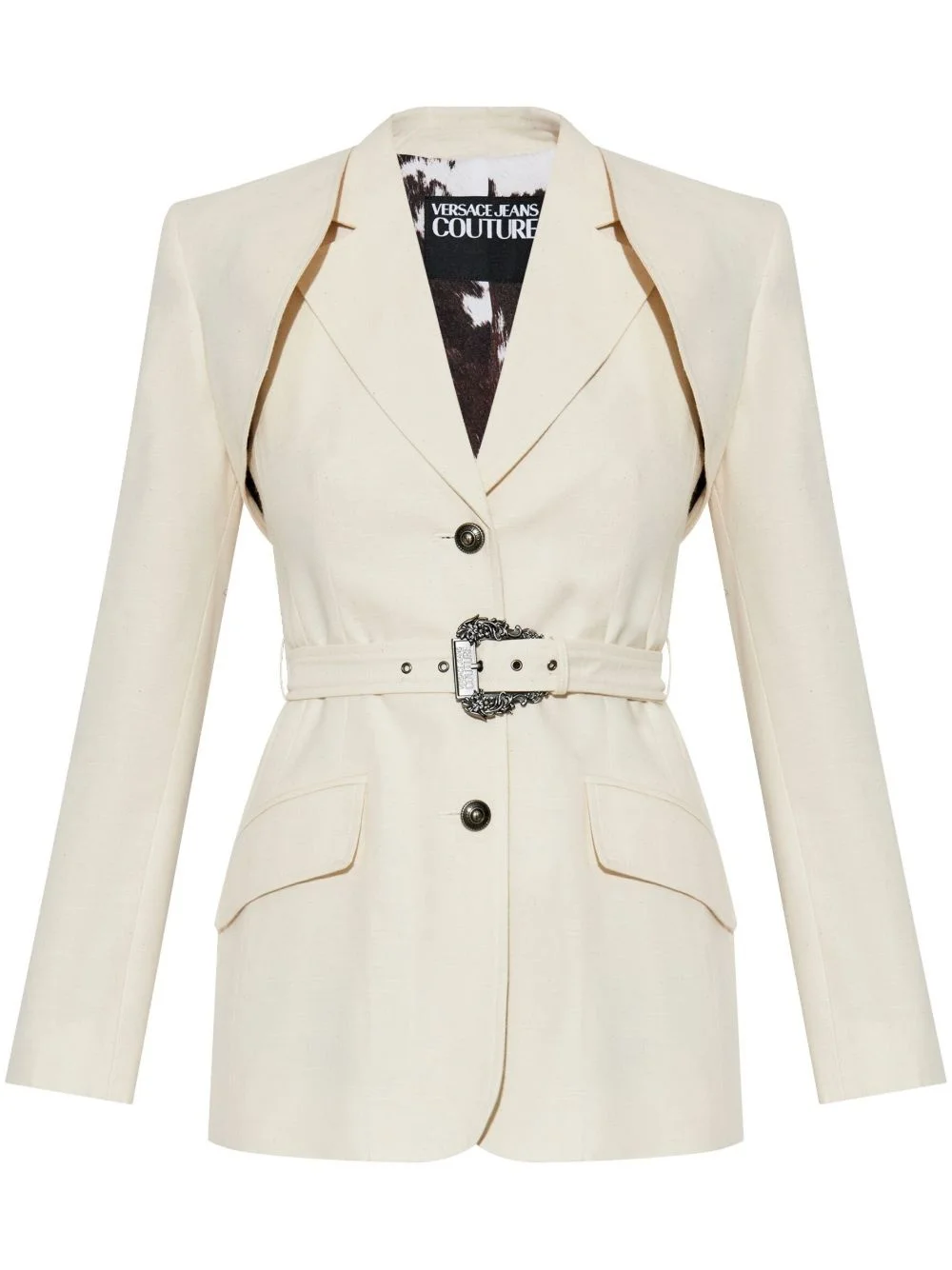 belted blazer Highlights - White - Front button fastening - Two side flap pockets - Storm flap - Rear slit Made in Italy Composition Outer: Cotton 100% Lining: Polyester 100%