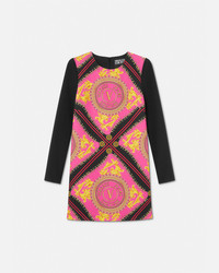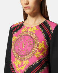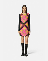 DETAILS A longsleeved shift mini dress featuring a VEmblem Chain print at the front - V-Emblem Chain print - Long sleeves - Round neckline - Concealed zip closure at the back - Lined - Outer composition 1: 96% Polyester, 4% Elastane - Outer composition 2: 88% Polyester, 12% Elastane - Lining: 100% Polyester Item: E75HAO921-ENS355_EQC6 SIZE & FIT - The model is 5'8" tall and wears size 40 - All sizes fit Italian standards