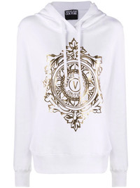 V-Emblem cotton hoodie white/gold cotton logo print at the chest drawstring hood long sleeves straight hem Imported Composition Outer: Cotton 100% Lining: Cotton 100% SIZE & FIT Model measurements Height 5 ft 11 in(1.8 m) Bust/Chest 31.49 in(80 cm) Hips 35.82 in(91 cm) Waist 24.8 in(63 cm) FittingInformation This piece fits true to size. We recommend you get your regular size Cut for a loose fit Made with a mid-weight fabric Washing instructions Hand Wash