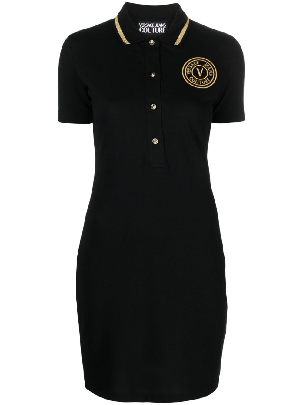 V-Emblem cotton polo minidress A sporty design, this black Versace Jeans Couture minidress is made from cotton piqué to a minimalist polo silhouette. It is illuminated by golden trim, buttons and V-Emblem logo embroidery at the chest. Highlights - Black/gold-tone - Cotton - Piquã© weave - Embroidered logo at the chest - Contrasting trim - Polo collar - Front button placket - Short sleeves - Above-knee length - Straight hem Imported Composition Cotton 100% SIZE & FIT Model measurements Height 5 ft 10 in(1.77 m) Bust/Chest 31.1 in(79 cm) Hips 35.43 in(90 cm) Waist 24.4 in(62 cm) FittingInformation Designed for a close fit throughout Made from a midweight non-stretch fabric, this piece offers minimal elasticity when worn This piece fits true to size – take your usual size