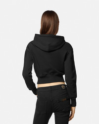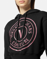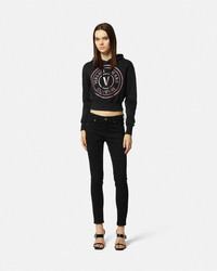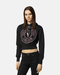 DETAILS This cropped cotton hooded sweatshirt features a front glitter V-Emblem logo. - V-Emblem Logo - Long sleeves - Drawstring hood - Elastic hem and cuffs - Outer composition 1: 100% Cotton - Outer composition 2: 95% Cotton, 5% Elastane Item: E76HAIG05-ECF01G_E899 SIZE & FIT - The model is 5'11" tall and wears size S - All sizes fit Italian standards