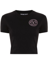 V-Emblem glittered T-shirt Highlights - Black - Stretch-cotton - Soft jersey - Crew neck - V-emblem logo print at the chest - Glitter detailing to the logo - Short sleeves - Cropped - Straight hem - Pull-on style Imported Composition Cotton 95%, Spandex/Elastane 5% SIZE & FIT Model measurements Height 5 ft 9 in(1.76 m) Bust/Chest 31.88 in(81 cm) Hips 35.43 in(90 cm) Waist 24.8 in(63 cm) FittingInformation Designed for a close fit throughout Made from a midweight stretch fabric, this piece offers elasticity and flexibility when worn This piece fits true to size – take your usual size Washing instructions Machine Wash