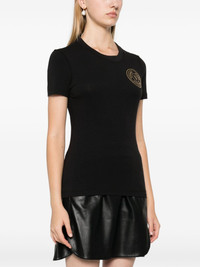 logo-print T-shirt Highlights - Black - Cotton blend - Jersey texture - Logo print at the chest - Crew neck - Short sleeves - Straight hem Imported Composition Cotton 95%, Spandex/Elastane 5% SIZE & FIT Model measurements Height 5 ft 9 in(1.75 m) Bust/Chest 31.88 in(81 cm) Hips 34.64 in(88 cm) Waist 24.01 in(61 cm) Measurement SLEEVE LENGTH 6.29 in(16 cm) LENGTH 23.22 in(59 cm) BUST 29.92 in(76 cm) Shoulder Width 14.17 in(36 cm) FittingInformation Designed for a slim fit that sits just away from the body offering a close yet comfortable fit Made from a midweight stretch fabric, this piece offers elasticity and flexibility when worn