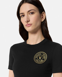 This jersey T-shirt dress has short sleeves and features a V-Emblem logo on the chest. - V-Emblem logo print - Short sleeves - Crewneck - Outer composition: 95% Cotton, 5% Elastane Size & Fit - The model is 5'8" ft tall and wears size S - All sizes fit Italian standards Item: E77HAOT00-ECJ03T_EG89