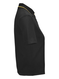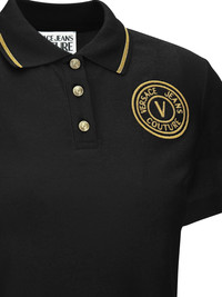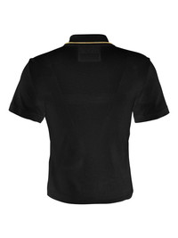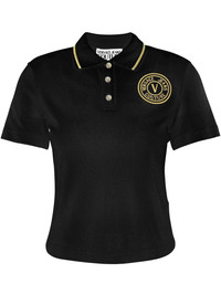 logo-embroidered polo shirt Highlights - Black - Short front button fastening - Short sleeves - Striped edge - Embossed gold-tone buttons Imported Composition Cotton 100% SIZE & FIT FittingInformation Designed for a slim fit that sits just away from the body offering a close yet comfortable fit Made from a midweight non-stretch fabric, this piece offers minimal elasticity when worn