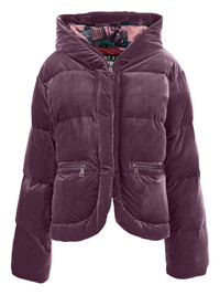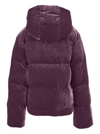 velvet puffer jacket Highlights - Purple - Velvet finish - Quilted design - Classic hood - Zip fastening - Zip pockets Imported Composition Fabric 100% Washing instructions Read Manufacturer Guidelines