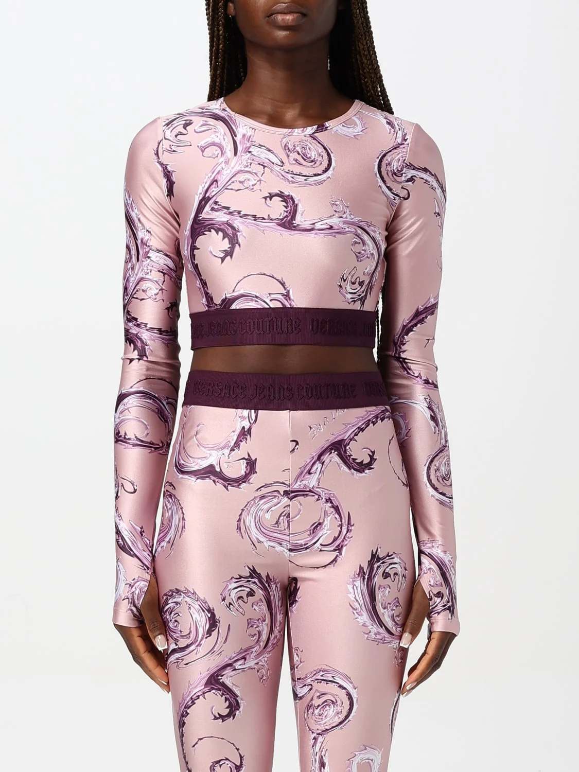 DESCRIPTION - Sleeves: Long - Bottom: Stretch - Neckline: Round - Materials: Polyester - Pattern: Baroque DETAILS AND CARE Composition 80% polyester, 20%elastane SIZE AND FIT Sizes not available Size and fit Cropped fita Designer code: 77HAH218JS360 R03 Giglio Code: F93314 Designer: Versace Jeans Couture Collection: Versace Jeans Couture Woman Category: Clothing Versace Jeans Couture