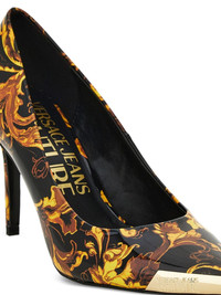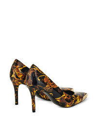 baroque-print stiletto pumps Highlights - Black - Gold baroque print - Pointed toe - Stiletto heel - Gold-tone cap toe - High heel Imported Composition Sole: Calf Leather 100%, Rubber 100% Outer: Polyurethane 100% Lining: Calf Leather 100%