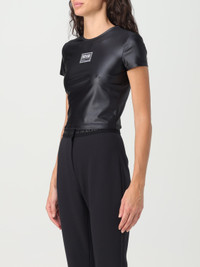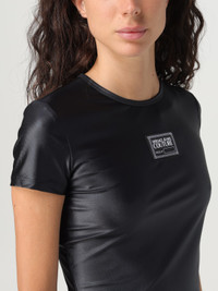 Descrizione - Stretch design - Casual style - Slim fit - Stretch fabric - Laminated finish - Crew neckline - Regular shoulders - Short sleeves - Contrasting logo patch applied - Straight hem DETAILS AND CARE Composition 79 NYLON 21 ELASTAN SIZE AND FIT Sizes not available Designer code: 75HAH602J0062 899 Giglio Code: E71146 Designer: Versace Jeans Couture Collection: Versace Jeans Couture Woman Category: Clothing Versace Jeans Couture