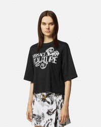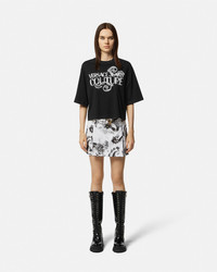 DETAILS A short and wide-sleeved cotton T-Shirt featuring the Institutional logo detailed with Barocco motifs in a watercolor finish. - Institutional logo - Watercolor Couture motif - Short sleeves - Crewneck - Outer composition: 100% Cotton Item: E76HAHG01-ECJ00G_E899 SIZE & FIT - The model is 5'11" tall and wears size S - All sizes fit Italian standards