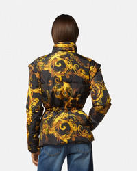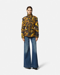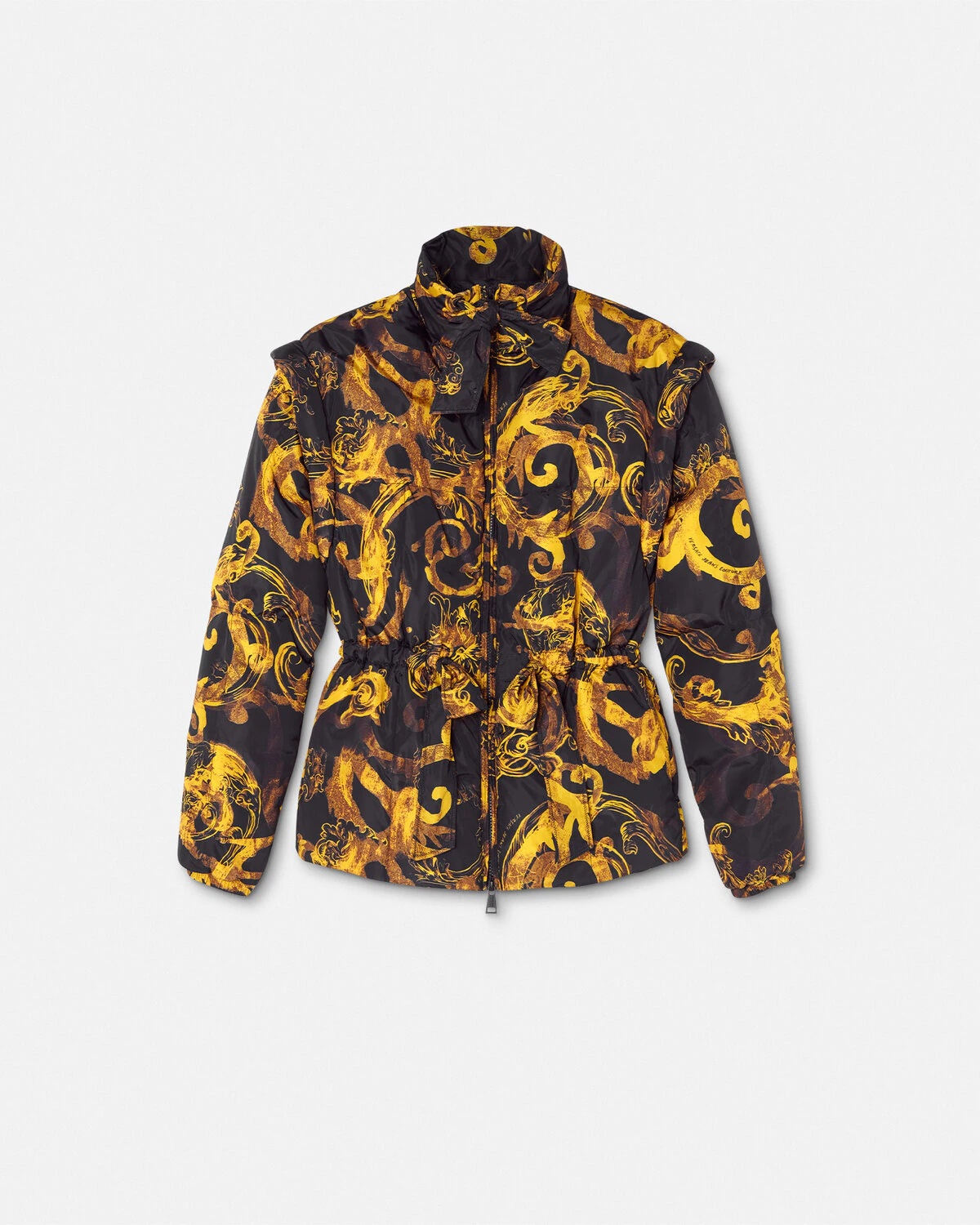 DETAILS The zipped parka outerwear puffer jacket features Watercolour Couture print and adjustable drawstring neck and waist. The shoulders are detailed with extra padding for added volume. - Watercolour Couture print - Drawstring high-neck - Drawstring waist - Front zip closure - Side shoulder padding - Concealed zipped side pockets - Elastic cuffs - Outer composition: 100% Polyester - Lining 1: 80% Duck down, 20% Duck feather - Lining 2: 100% Polyester Item: E76HAU405-ECQS85_EG89 SIZE & FIT - The model is 5'10" tall and wears size 40 - All sizes fit Italian standards