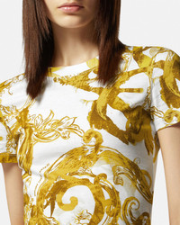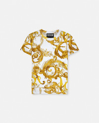 DETAILS This slim-fitting short-sleeved cotton T-shirt features a Barocco motif in a watercolour finish. - Watercolour Couture print - Short sleeves - Crewneck - Outer composition: 100% Cotton Item: E76HAH6D8-EJS287_EG03 SIZE & FIT - The model is 5'11" tall and wears size S - All sizes fit Italian standards