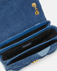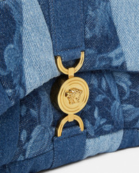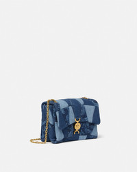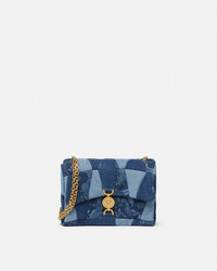 DETAILS The patchwork Kleio shoulder bag is crafted from repurposed denim in varying washes featuring a lasered Barocco motifThe line is characterized by the Houses signature Medusa 95 lock closure and is enriched by a sliding chain strap strap that can be adjusted for shoulder or crossbody ways of wearing - Medusa '95 hardware - Foldover flap - Interior slip compartments - Magnetic interlocking closure - Sliding chain shoulder strap - Outer composition: 100% Cotton - Lining: 100% Cotton - Trim 1: 100% Cotton - Trim 2: 100% Lambskin Item: 1015964-1A14385_1D06V SIZE & FIT - L8.7 x W3.5 x H6.5" / L22 x W9 x H16.5 cm - Shoulder strap: L24.4-39.4" / L62-100 cm - Shoulder drop: L10.8-20.1" / L27.5-51 cm - Approximate weight: 17.7 oz / 0.5 kg