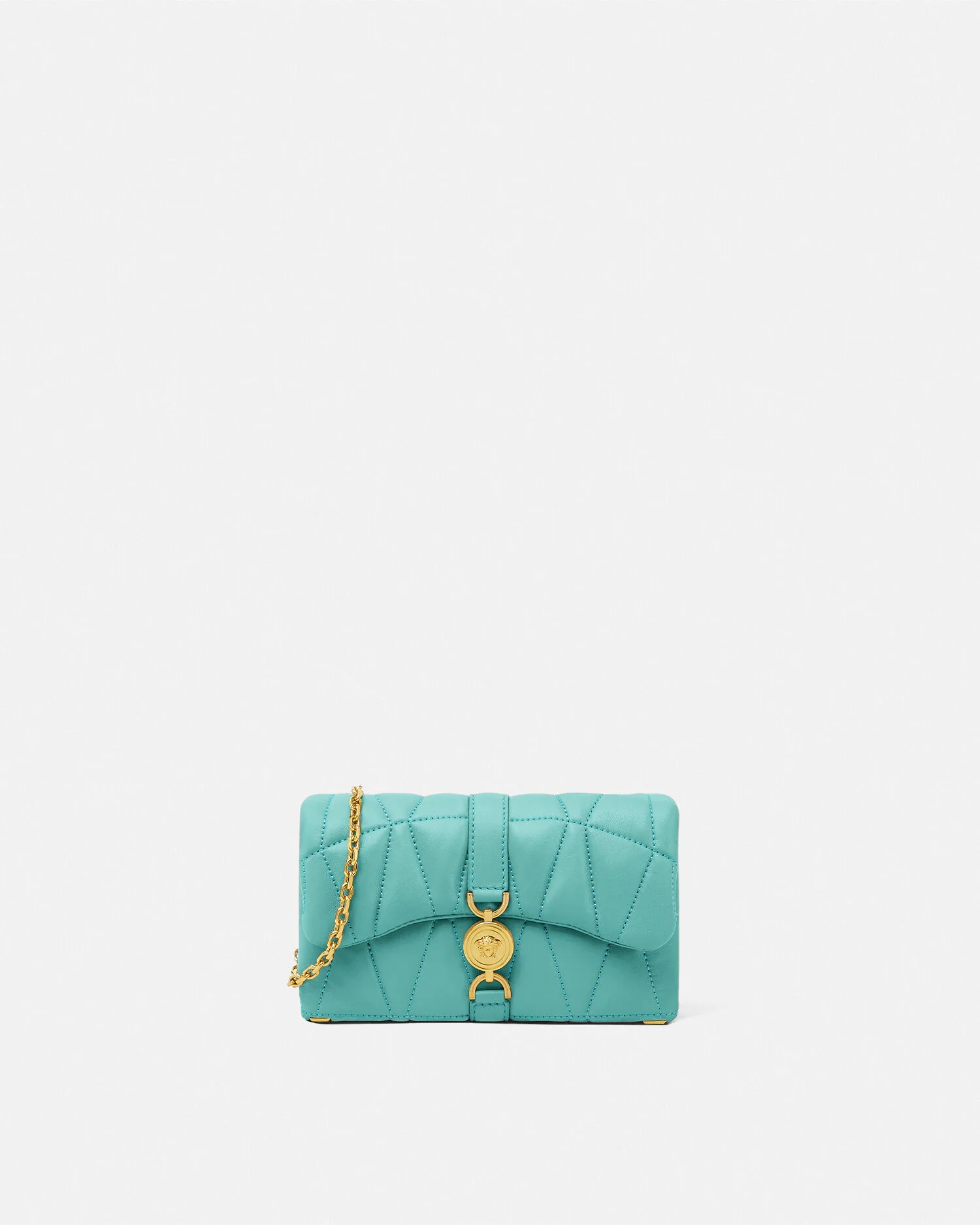 The Kleio crossbody mini bag is crafted from quilted nappa leather with a soft pillow-like appearance and feel. The line is characterised by the House's signature Medusa '95 closure and is enriched by a removable chain strap. - Medusa '95 hardware - Foldover flap - Interior slip compartments - Magnetic interlocking closure - Detachable chain shoulder strap - Outer composition: 100% Lambskin - Lining: 100% Cotton Size & Fit - L7.5" x W2.4" x H4.7" / 19 x W6 x H12 cm - Chain shoulder strap: L39.4" / L100 cm - Chain shoulder strap drop: L19.7" / L50 cm - Approximate weight: 14 oz / 0.4 kg Item: 1017740-1A12975_DTU_UNICA_1GO5V__