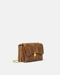 DETAILS The patchwork Kleio shoulder bag is crafted from repurposed leather and suede with a soft pillowlike appearance and feel The line is characterized by the Houses signature Medusa 95 lock closure and is enriched by a sliding chain strap strap that can be adjusted for shoulder or crossbody ways of wearing - Medusa '95 hardware - Foldover flap - Interior slip compartments - Magnetic interlocking closure - Sliding chain shoulder strap - Outer composition: 100% Goat leather - Lining: 100% Cotton - Trim: 100% Lambskin Item: 1015964-1A14375_2NF3V SIZE & FIT - L8.7 x W3.5 x H6.5" / L22 x W9 x H16.5 cm - Shoulder strap: L24.4-39.4" / L62-100 cm - Shoulder drop: L10.8-20.1" / L27.5-51 cm - Approximate weight: 17.7 oz / 0.5 kg