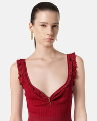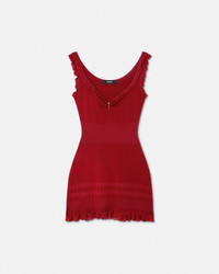 DETAILS A sleeveless fitandflare mini dress in a micro cableknit stretch wool with ruffled trims and a removable signature Safety Pin hardware on the neckline - Safety Pin hardware - Sleeveless - Shoulder straps - V-neckline - Outer composition: 56% Pure virgin wool, 25% Viscose, 17% Nylon, 2% Elastane - Trim: 85% Viscose, 13% Nylon, 2% Elastane Item: 1020372-1A14744_1RC40 SIZE & FIT - The model is 5'11" / 1.80 m tall and wears size 38 IT