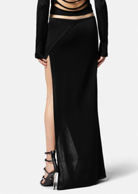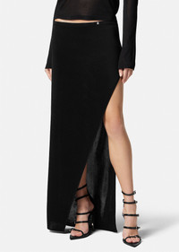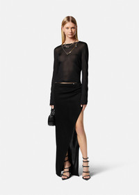 A long-length knit skirt featuring a side slit and accent Medusa stud. DETAILS & CARE - Medusa stud - Outer composition: 99% Viscose, 1% Other fibres - Do not wash - Do not bleach - Do not tumble dry - Cool iron - Delicate dry clean SIZE & FIT - L41'7" in - All sizes fit Italian standards - The model is 5'7" ft tall and wears size 38 IT