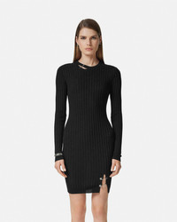 Safety Pin Ribbed-Knit Mini Dress