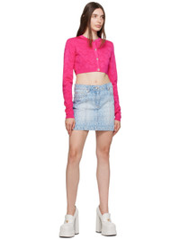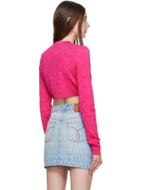 Knit stretch viscose-blend cardigan. Jacquard logo pattern. · Crewneck · Button closure · Rib knit cropped hem and cuffs · Logo-engraved silver-tone hardware Supplier color: Hot pink 91% viscose, 7% nylon, 2% elastane. Made in Italy 232404F095000