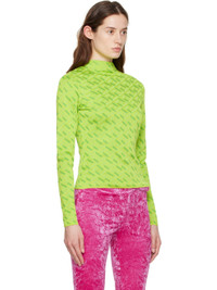 Knit silk-blend sweater. Jacquard Greek-key pattern throughout. · Mock neck · Rib knit hem and cuffs · Concealed zip closure at back Supplier color: Acid green/Green 56% silk, 43% viscose, 1% other fibres. Made in Italy 231404F099000