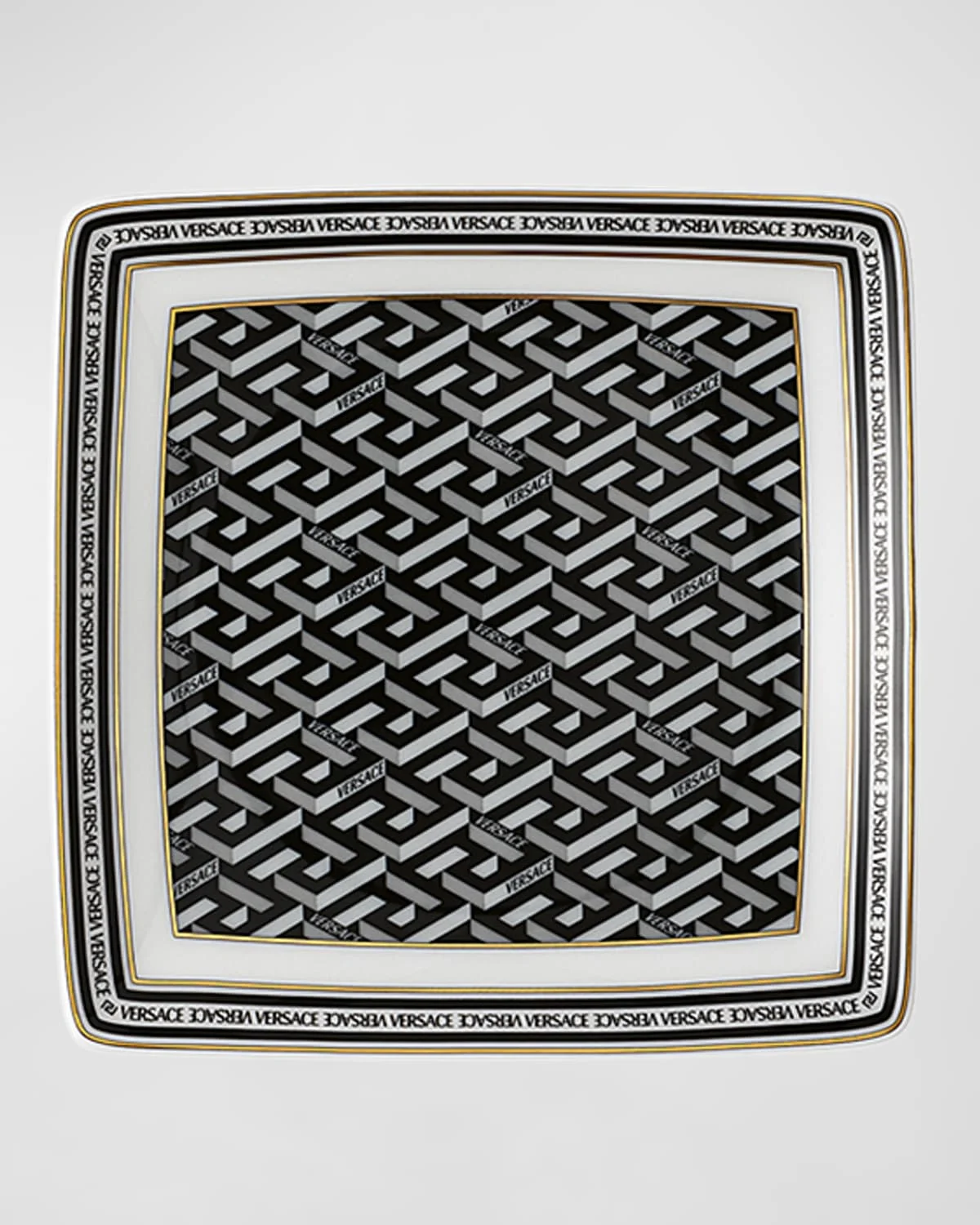The subtle geometric accents are contrasted with black and white to create an illusionistic effect Made of porcelain Approx. 4.5"Sq. Sold individually Dishwasher safe Made in Germany