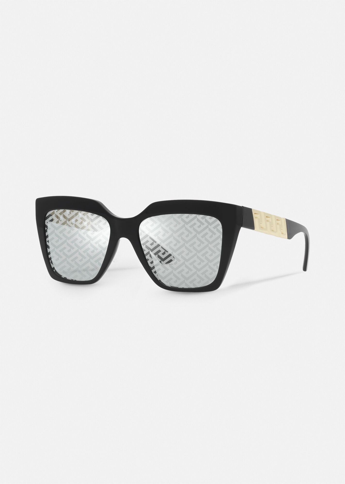 Accented by open-work La Greca hardware at the temples, these square shaped sunglasses come with acetate frames. DETAILS & CARE - Squared shaped lens - Frame colour: Black - Temple colour: Pale Gold - Lens colour: Monogram Silver - Frame: Acetate - Temple: Metal - Made in Italy SIZE & FIT - Eye size: 56 - Bridge: 19 - Temple: 145