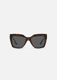 Accented by an open-work La Greca hardware at the temples, these square shaped sunglasses come with acetate frames. DETAILS & CARE - Squared shaped lens - Frame colour: Trasparent Red - Temple colour: Gold - Lens colour: Green - Frame: Acetate - Temple: Metal - Made in Italy SIZE & FIT - Additional fit - Fit designed for shorter nose bridges, featuring a decreased front curvature - Eye size: 56 - Bridge: 19 - Temple: 145