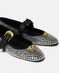 Ballerinas with crystal embellishments on a suede base featuring the signature three-dimensional La Medusa hardware and a Heritage buckle on the leather strap. - La Medusa hardware - Heritage buckle - Crystal embellishments - Round toe - Flat - Outer composition: 100% Goat leather - Lining: 100% Lambskin - Trim 1: 100% Calf leather - Trim 2: 59% Viscose, 41% Cotton - Sole: 100% Calf leather Size & Fit - Footbed: comfortable - Fits true to size, take your normal size Item: 1021710-1A17026_2B30V