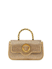 mini La Medusa tote bag Highlights - Gold-tone - Crystal embellishment - Top handle - Chain strap - Logo medallion - Magnetic flap closure Made in Italy Composition Outer: Viscose 72%, Silk 28% Lining: Lambskin 100% SIZE & FIT Measurement DEPTH 1.96 in(5 cm) HANDLE 1.96 in(5 cm) HEIGHT 4.72 in(12 cm) WIDTH 7.48 in(19 cm)