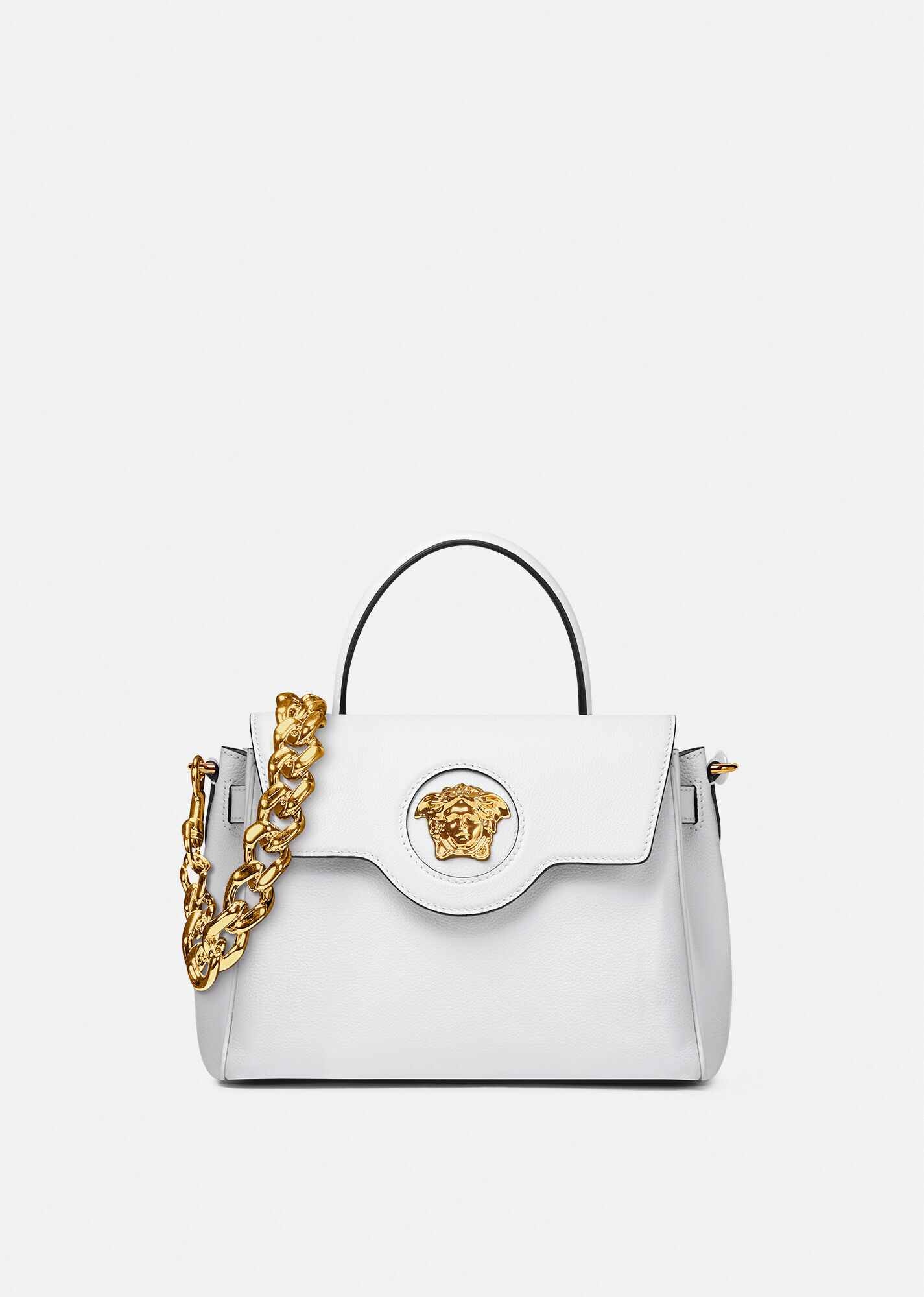 DETAILS Crafted from grained leather in a structured silhouette, the signature handbag is adorned by a Medusa plaque at the front. The versatile style can be carried in-hand or worn crossbody using the interchangeable chain and leather shoulder straps. - La Medusa plaque - Top handle - Detachable and adjustable leather shoulder strap - Detachable chain shoulder strap - Magnetic button closure - Zipped internal pocket - Outer fabric: 100% Leather - Lining: 100% Leather - Made in Italy Item: DBFI039-DVIT2T_DTU_UNICA_1W00V__ SIZE & FIT - Length: 25 cm - Width: 15 cm - Height: 22 cm - Shoulder straps: min 40, max 50 cm