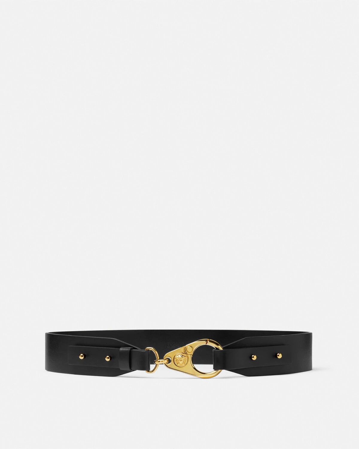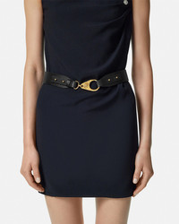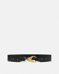 DETAILS A smooth leather belt featuring an accent hook closure with a central Medusa detail - Medusa hardware - Hook closure - Outer composition: 100% Calf leather Item: 1018365-DV3T_1B00V SIZE & FIT - Height: 1.6" / 4 cm