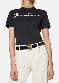DETAILS Crafted from supple leather, this sleek belt is embellished with a three-dimensional Medusa buckle. - La Medusa buckle - Collar stud buckle fastening - Outer fabric: 100% calf leather - Made in Italy Item: DCDD442-DVTFN_KVO41 SIZE & FIT - Height: 1.2" - Adjustable