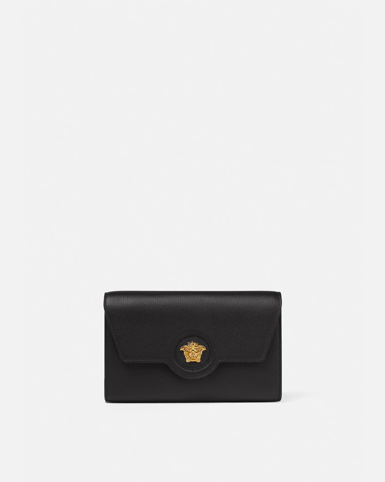 DETAILS A versatile design, this crossbody bag is crafted in Italy from lightly grained calf leather. The contemporary style is adorned with a three-dimensional Medusa plaque - the same décor found on the doors of Versace's Milanese villa. - La Medusa plaque - Adjustable shoulder strap - Magnetic closure - Zipped internal pocket - Internal card compartments - Embossed logo on reverse - Outer fabric: 100% Calf leather - Lining: 100% Cotton - Made in Italy Item: 1000814-DVIT2T_DTU_UNICA_1B00V__ SIZE & FIT - Length: 23 cm - Width: 5 cm - Height: 15 cm - Shoulder strap drop: min 45, max 55 cm